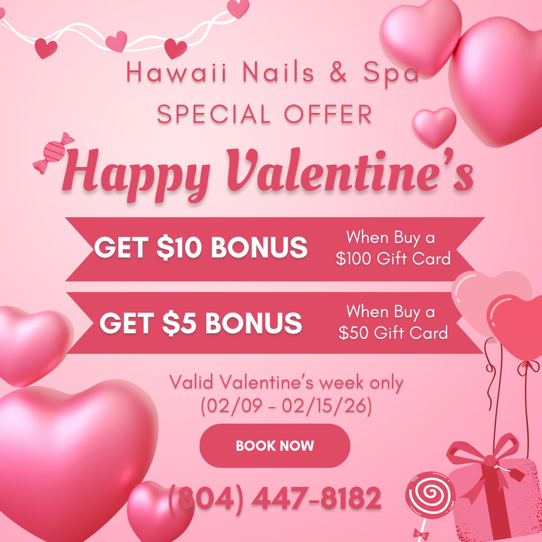 Come and experience our exceptional services at Hawaii Nails & Spa . Gift Certificate Available- Appointment & Walk-ins Welcome!